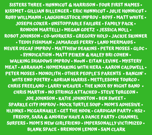 Saturday night, following a great line-up in our 6:00pm stand-up comedy show, we got our sketch comedy headliners and New York Times Critics Pick, Sisters Three at 7:30pm. Directed by Peter McNerney and starring Elana Fishbein and Elena Skopetos, Sisters Three is a fast paced, multi-character comedy about a family’s reluctant reunion. Immediately after that, there is a combination improv and sketch comedy show at 9:00pm and the night ends with our Mid-festival finale at 10:30pm.